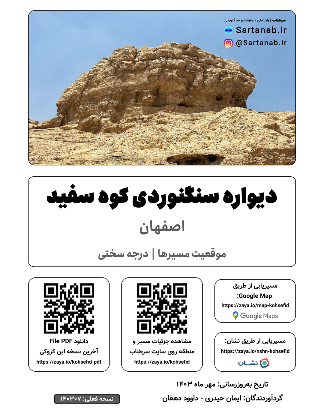 مفتخر هستیم که اولین نسخه از اطلاعات دیواره کوه سفید اصفهان را در تاریخ 15 مهر ماه 1403 به شما همنوردان عزیز تقدیم کنیم و گامی کوچک در راستای تعالی ورزش سنگنوردی برداشته باشیم.